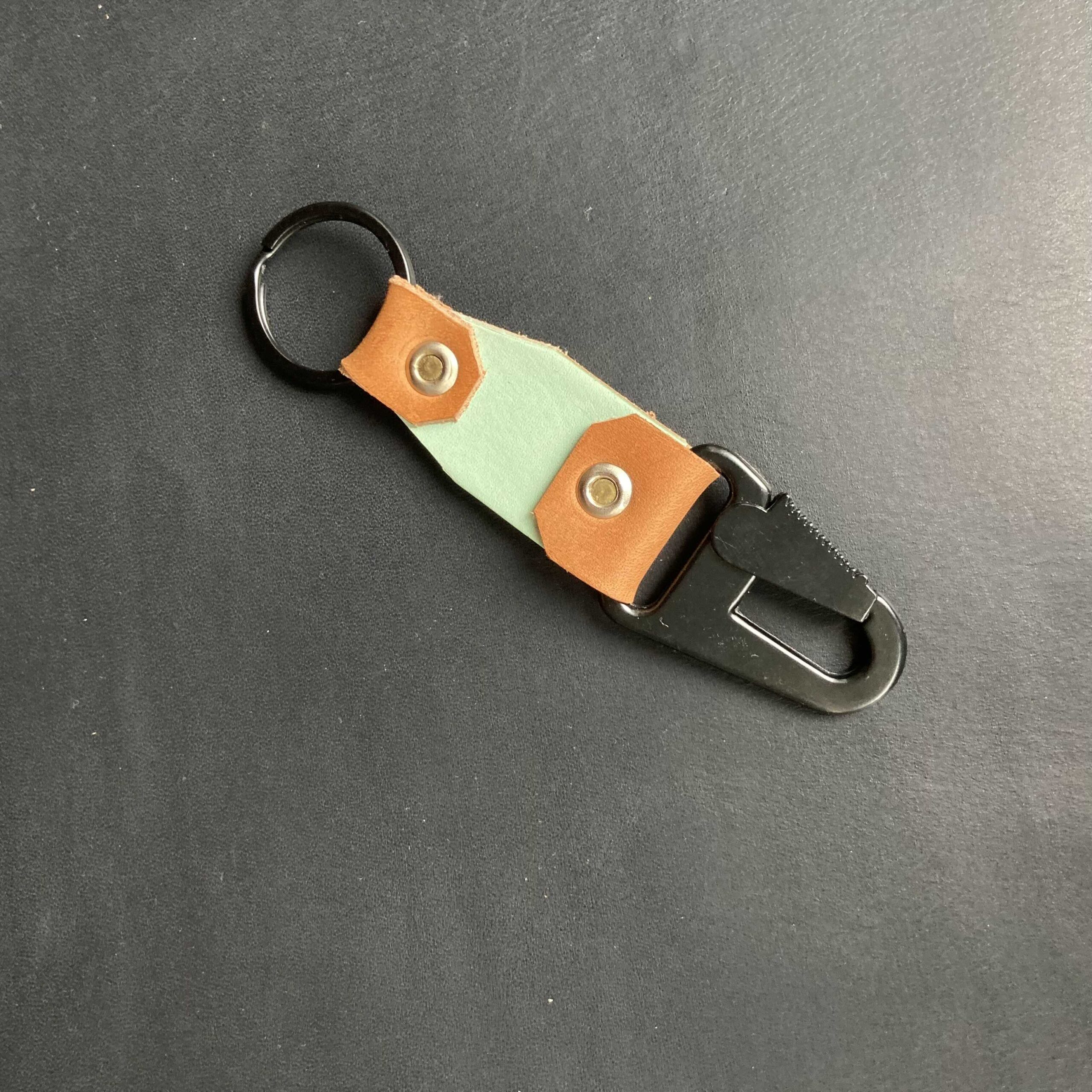 Növényi cserzésű bőrből készült karabineres kulcstartó.