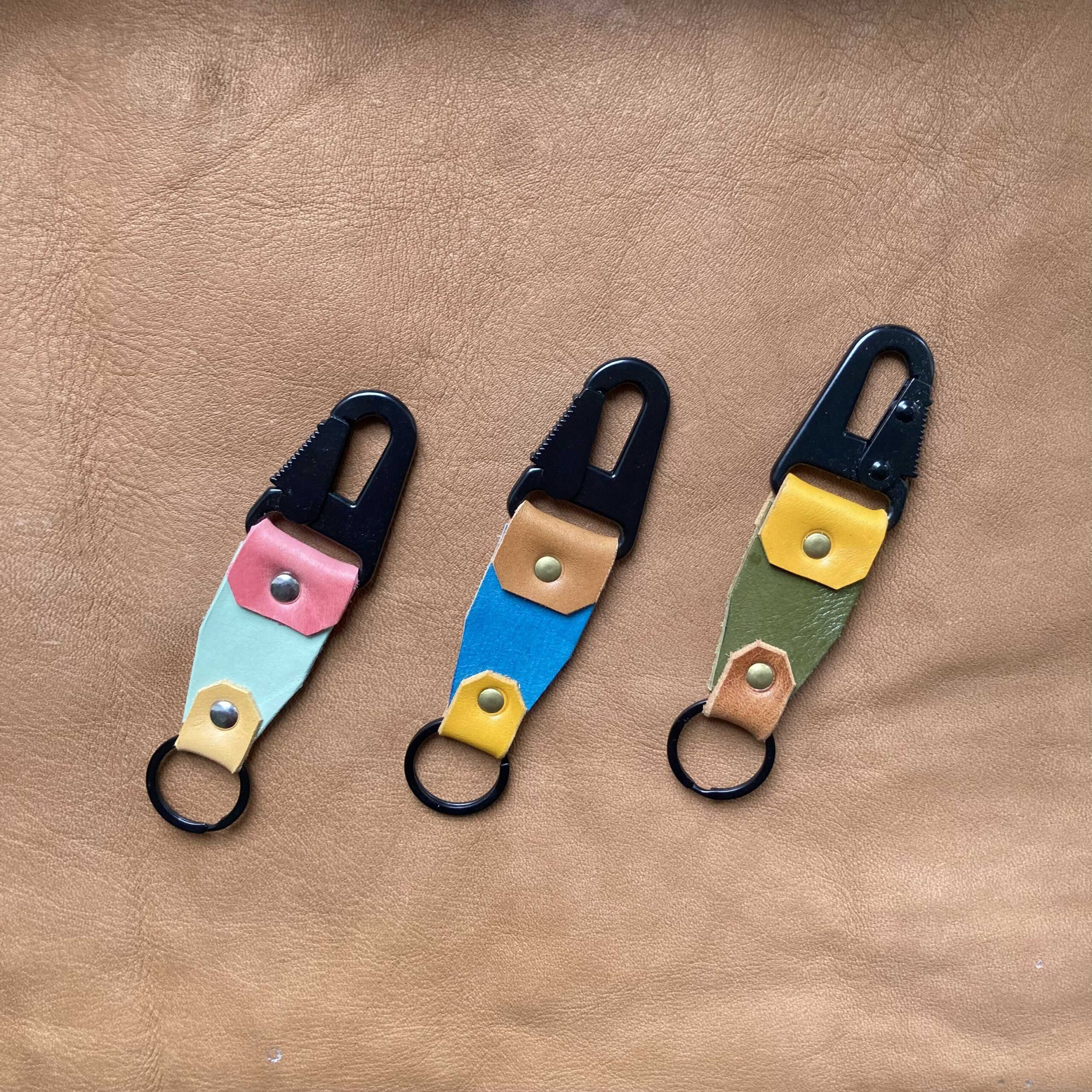 Növényi cserzésű bőrből készült karabineres kulcstartó.
